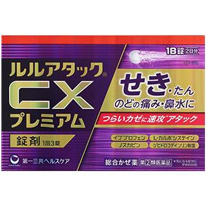 【 指定第2類医薬品 】 ルルアタックCXプレミアム 18錠 せき たん のどの痛み 鼻水 鼻づまり 発熱 悪寒