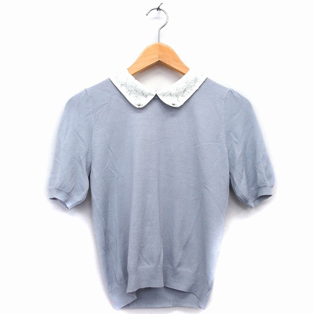 【中古】ロディスポット LODISPOTTO ニット カットソー 半袖 衿付き レース ビジュー装飾 切替リブ M ライトグレー 灰