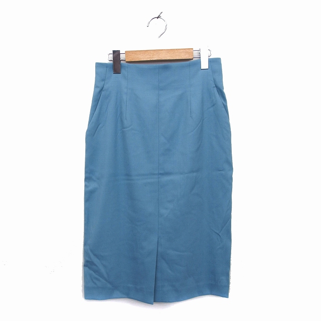 【中古】ノーリーズ Nolley's スカート タイト ミモレ丈 ロング ウール混 バックジップ 無地 38 ライトブルー 青