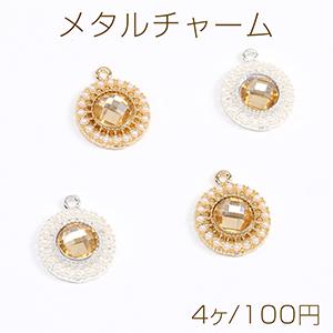 メタルチャーム ストーン&パール付きチャーム ラウンド 14×17mm(4ヶ)