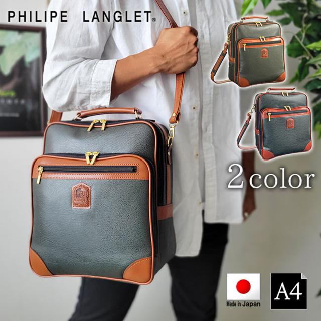 ショルダーバッグ メンズ 大人 通勤 ブランド a4 縦型 斜めがけ 日本製 豊岡かばん 2way 普段使い 合皮 黒 カーキ 40代 50代 60代 70代 KBN16455 フィリップラングレー PHILIPE LANGLET