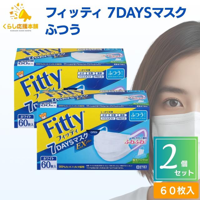 2個セット フィッティ 7DAYSマスク EXプラス ふつう 60枚入 耳ゴムふわり ホワイト