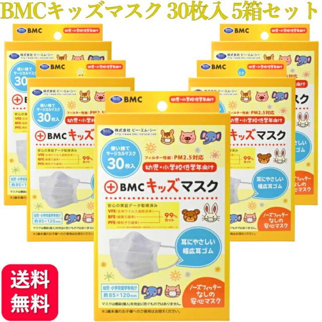 5個セット BMC フィットマスク キッズサイズ ホワイト 30枚入