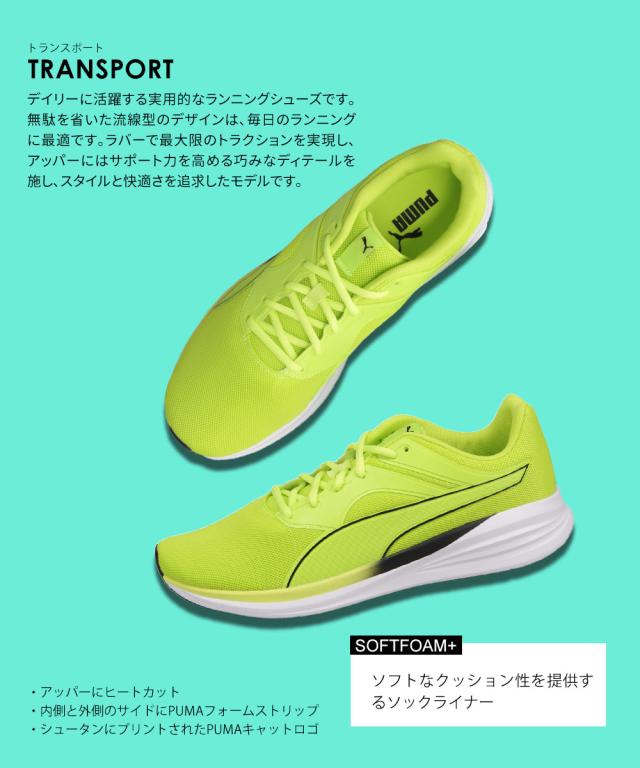 プーマ ランニングシューズ トランスポート スポーツ トレーニングシューズ 運動靴 メンズ レディース ユニセックス ジュニア 学生 通学 紐 メッシュ 部活 陸上 ブラック ライム 新色 puma Transport 377028