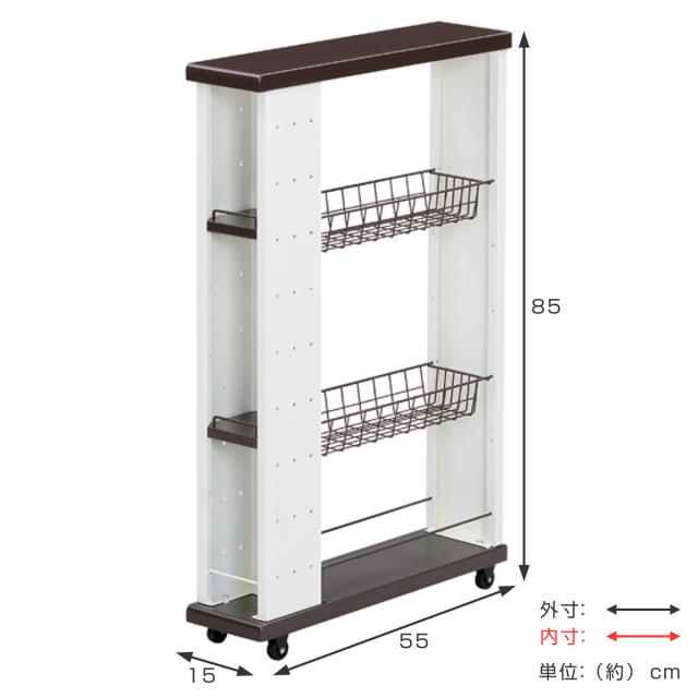 キッチンワゴン 幅15cm 高さ85cm ロータイプ ( キャスター付き 天板付き スリムワゴン キッチンラック 組立式 隙間収納 収納ラック 収納ワゴン ラック ワゴン すき間 すきま キッチン キッチン収納 キッチン すきま収納)