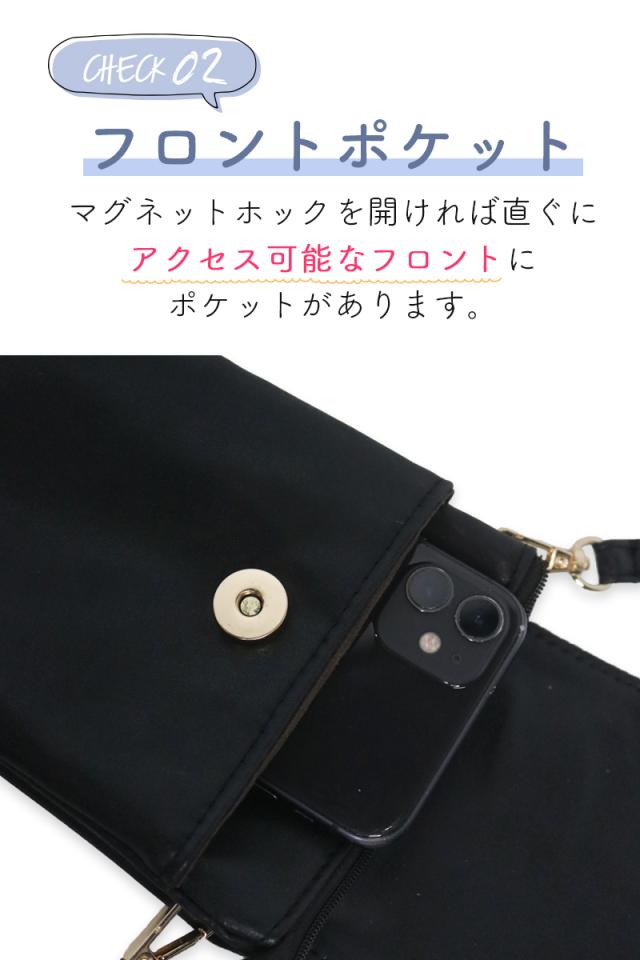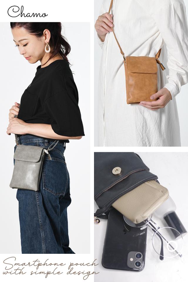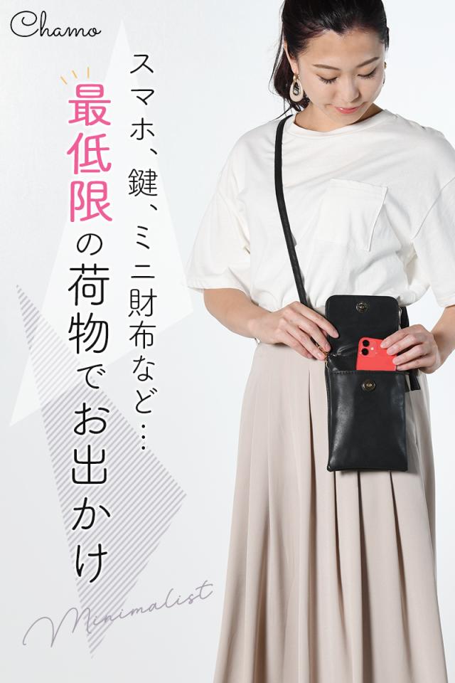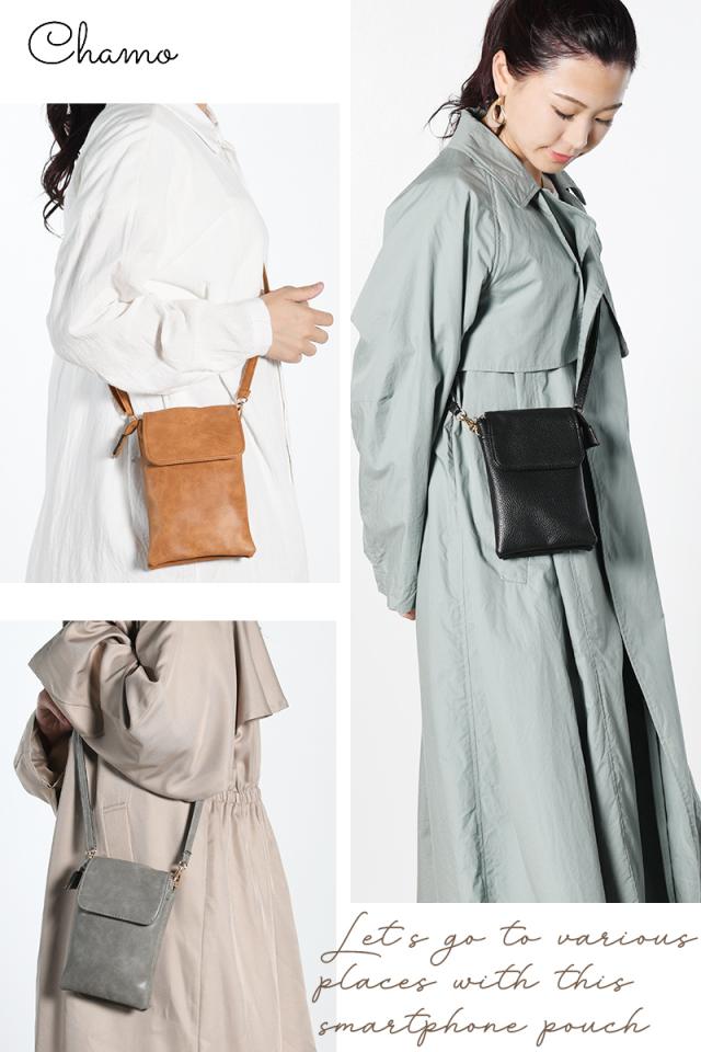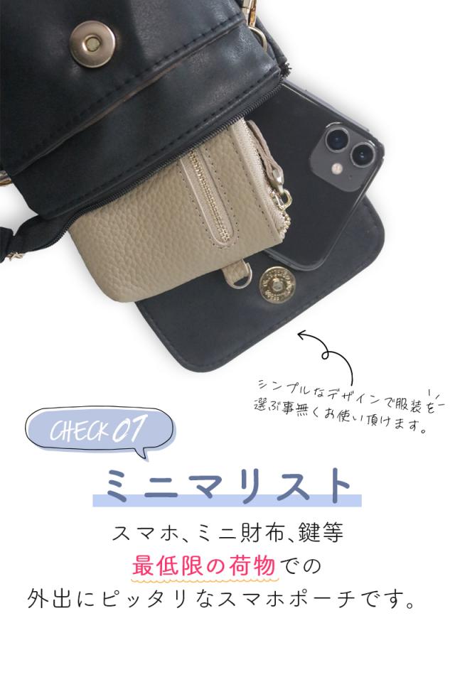 スマホ、ミニ財布、鍵等最低限の荷物での外出にピッタリなスマホポーチです。