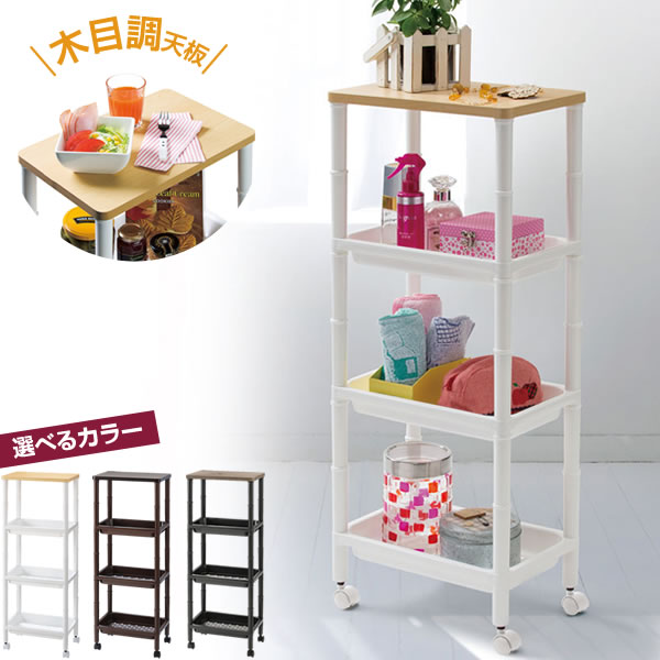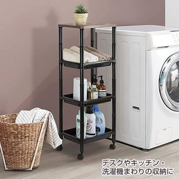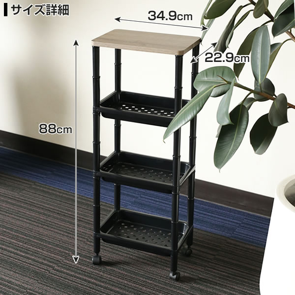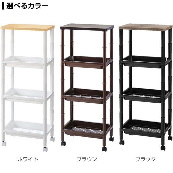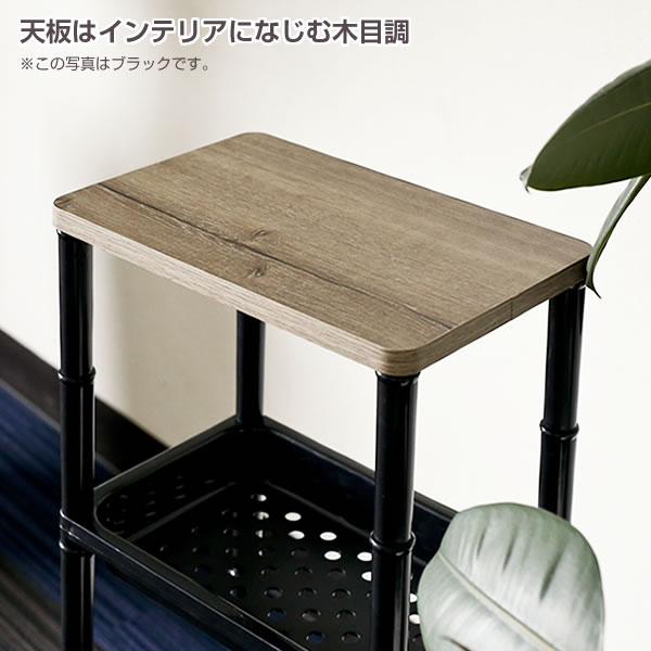 収納ラック ウッドテーブルワゴン ホワイト/ブラウン/ブラック | キャスター付き バスケット サイド ワゴン プラスチック キッチン リビング 木製 天板付き シェルフ 棚 かご カゴ 3段