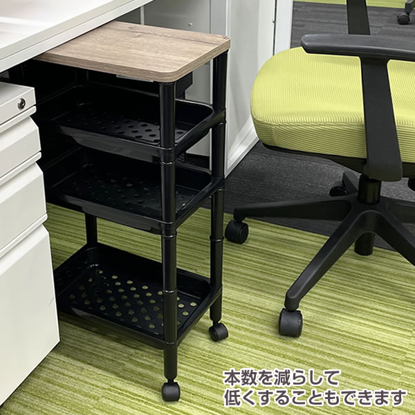 パイプを抜けば、全体の高さを低くすることも可能。テーブル下に入れたり、用途が変わってもフレキシブルに使えます。