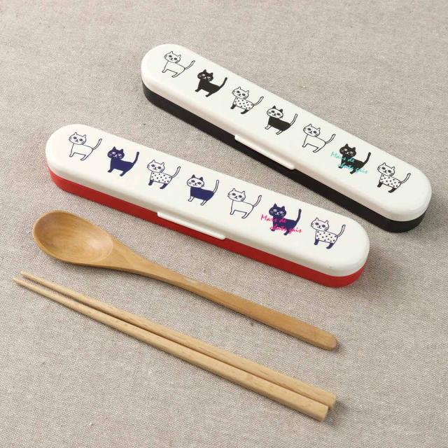 Potter コンビセット ネコ ( スプーン 箸 18cm お箸 カトラリーセット カトラリー セット お弁当用 女子 ねこ 18センチ 木製 天然木 弁当 お弁当 持ち運び 携帯用 女性 ネコ )