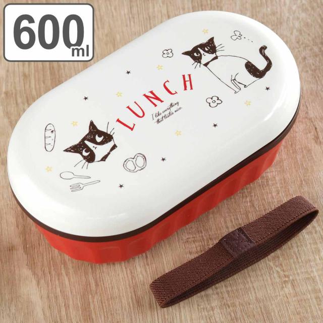 弁当箱 1段ランチボックス 600ml ハッピーキャット レッド 弁当箱 1段( お弁当箱 ランチボックス レンジ対応 一段 ドーム型 女子 ねこ レンジOK お弁当 弁当 仕切り付き ランチベルト付き 防汚加工 一段弁当箱 女性 ネコ )