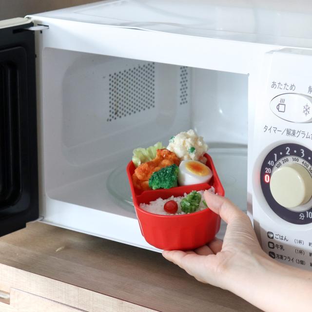 蓋を除けば電子レンジで温めることができるので、ランチタイムに出来立てのようなホカホカのお弁当が楽しめます。