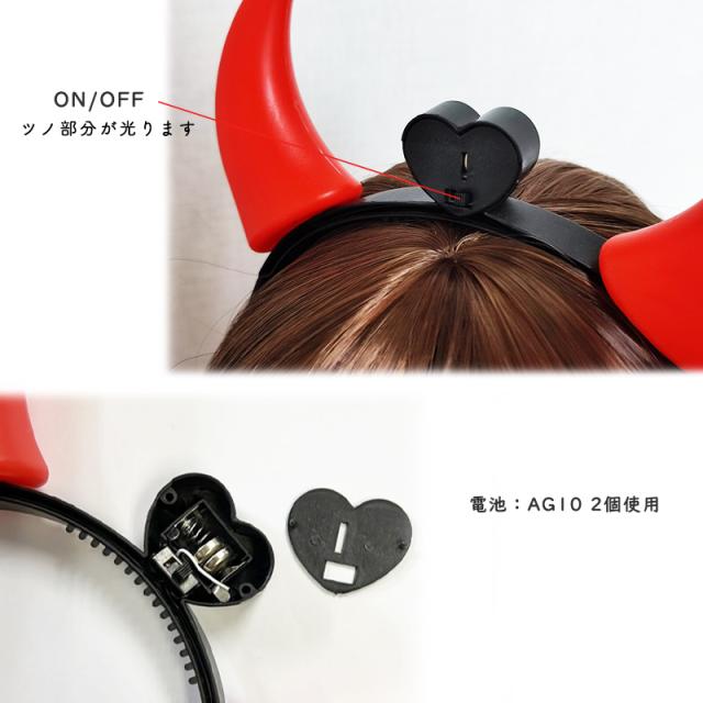 デビル カチューシャ 光る 推し活 クリスマス クリスマスパーティー ハロウィン お揃い 点灯 小悪魔 コスプレ コスチューム ツノ パーティ パーティー 仮装 衣装 目立つ