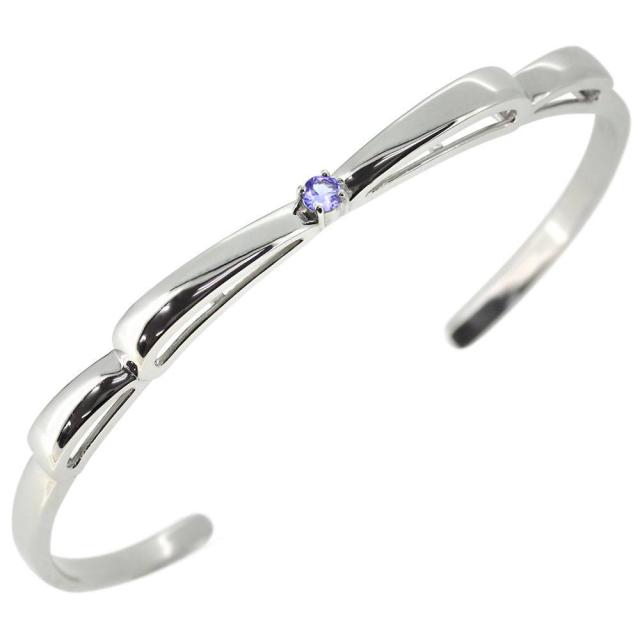 シルバー バングル レディース 細め タンザナイト 誕生石 12月 一粒 ブレスレット リボン 大人