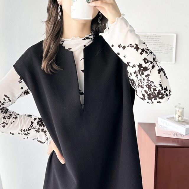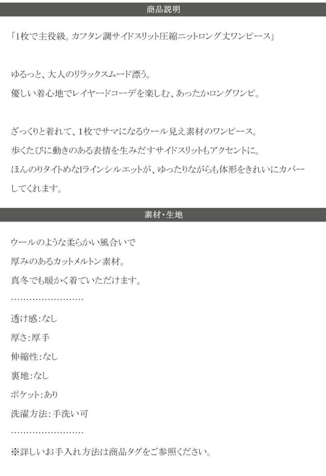 ★1枚で主役級。カフタン調サイドスリット圧縮ニットロング丈ワンピース★
