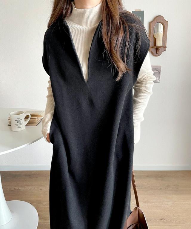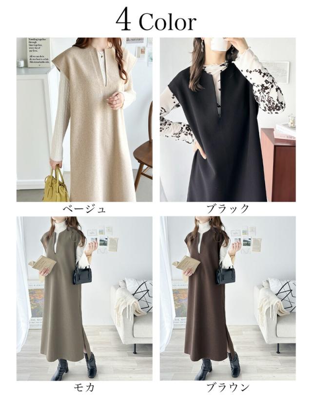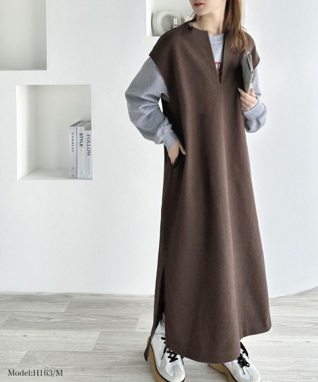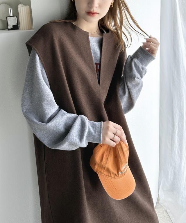 優しい着心地でレイヤードコーデを楽しむ、あったかロングワンピ。