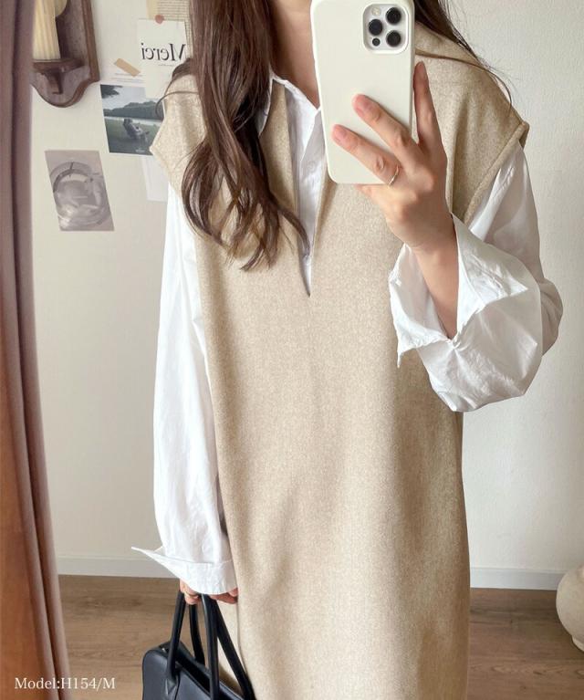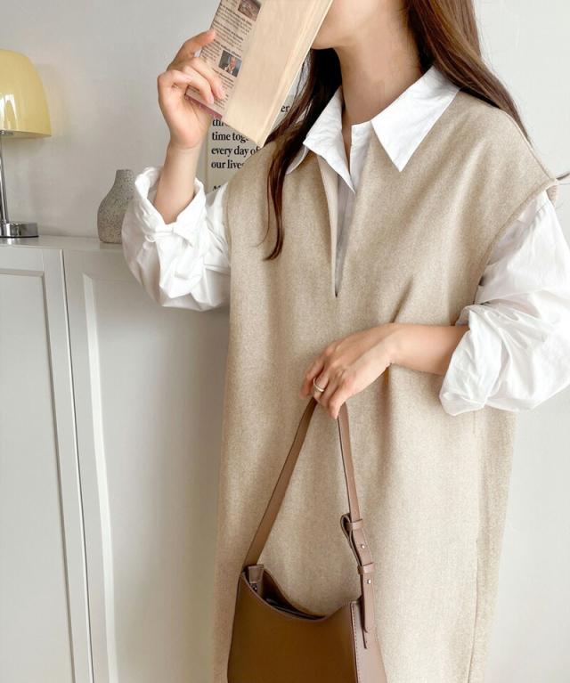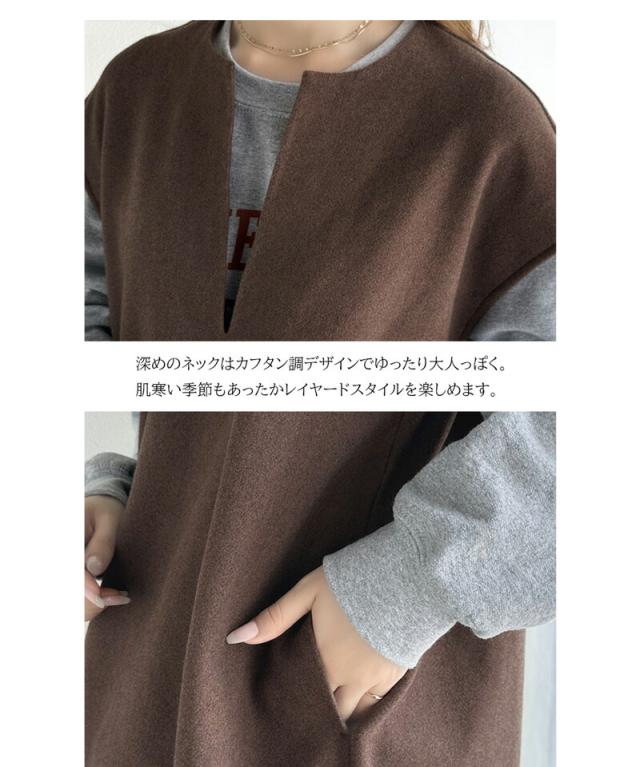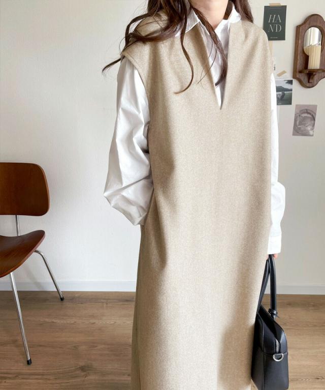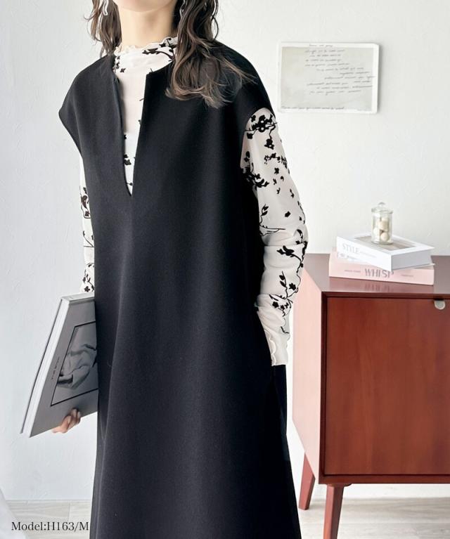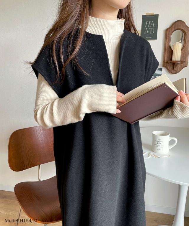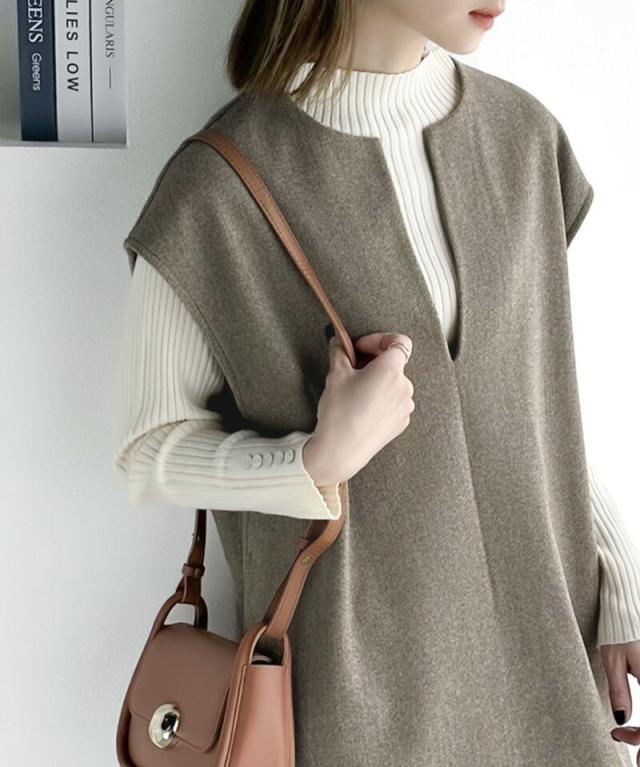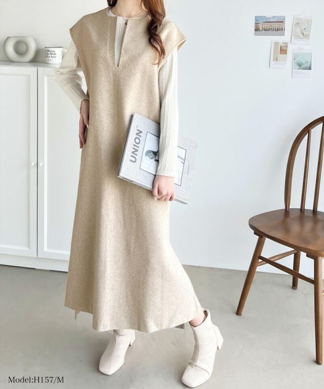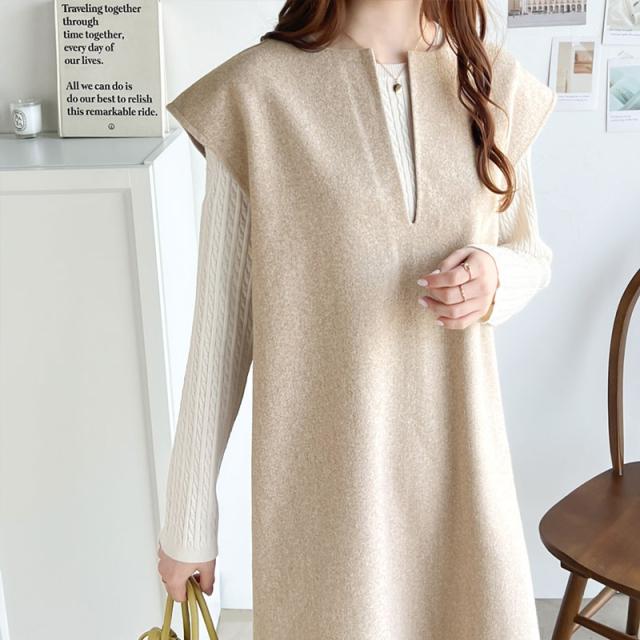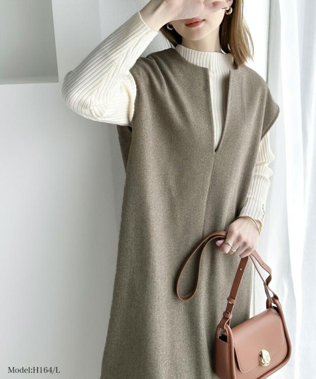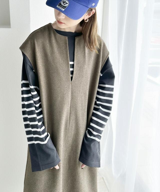 ざっくりと着れて、1枚でサマになるウール見え素材のワンピース。