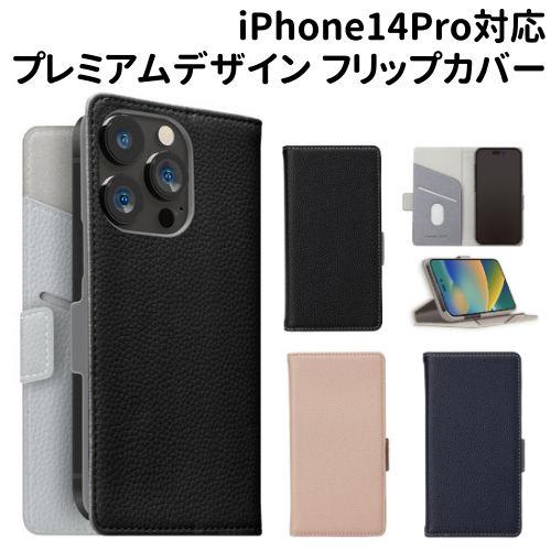 送料無料 iPhone14Pro対応 フリップカバー プレミアムデザイン PG-22QFP07-9 /ブラック ベージュ ネイビー/