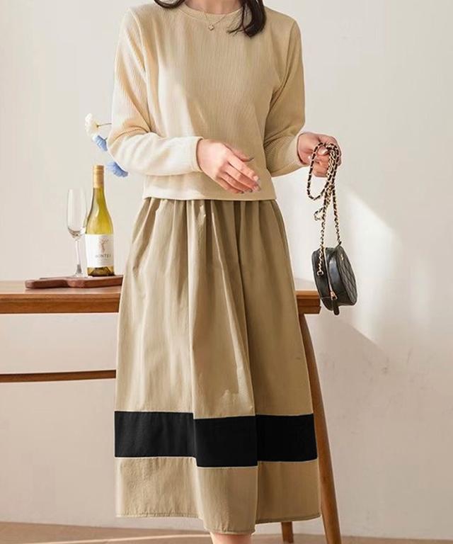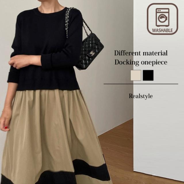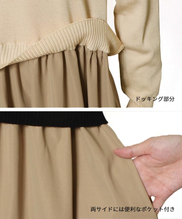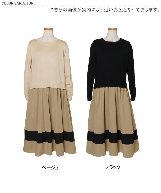 新作 ワンピース レディース 50代 40代 きれいめ 長袖 秋 冬 ロング ニット 重ね着風 カジュアル 無地 ゆったり 体型カバー フレア ウォッシャブルニット 洗えるニット おうちで洗える 家で洗える