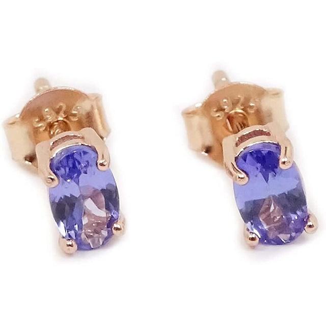 SV タンザナイトスタッド ピアス 推計0.4カラットオーバルミックスカット SVピンクゴールド仕上げ【誕生石12月】【ギフトラッピング済み】
