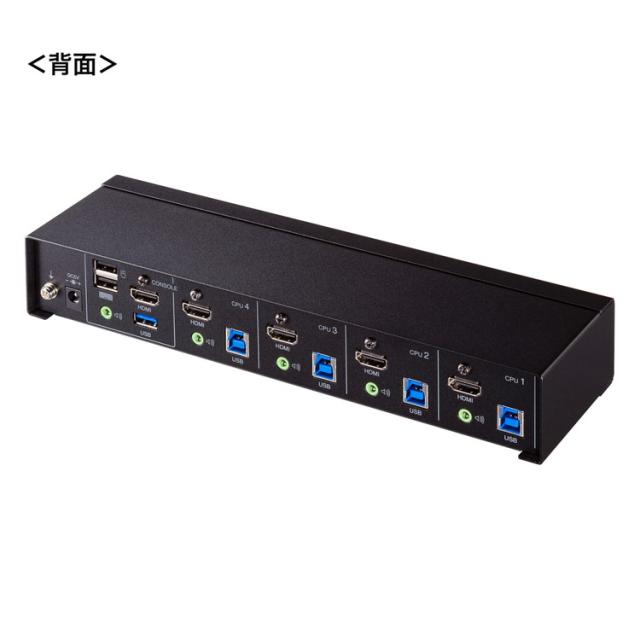■インターフェース:(パソコン用)ディスプレイ/HDMI(タイプA)メス×4 キーボード・マウス・USB3.2 Gen1ハブ/USB Bコネクタメス×4スピーカー/3.5mmステレオミニジャック×4(周辺機器側)ディスプレイ/HDMI(タイプA)メス×1キーボード/USB Aコネクタメス×1マウス/USB Aコネクタメス×1スピーカー/3.5mmステレオミニジャック×2USB3.2 Gen1ハブ/USB Aコネクタメス×2