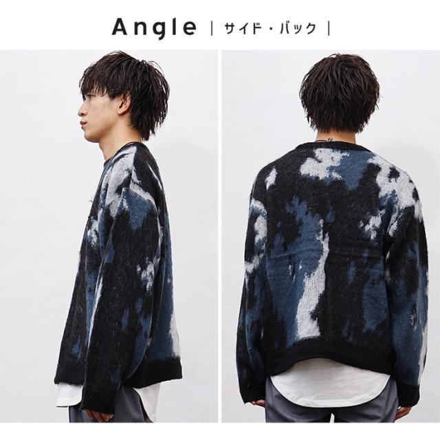 ニット メンズ ニット セーター メンズ オーバーサイズ ビッグシルエット ワイド クルーネック モヘアニット 総柄 ニット セーター 派手な服 メンズ ゆるニット ビッグ ゆったり ルーズ 大きいサイズ 韓国 ファッション モード系 春服 春 春新作 hit_d 新作 あったか_f