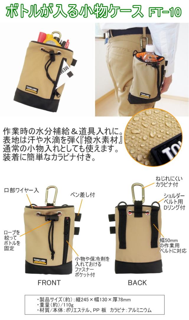 ボトルが入る小物ケース FT-10 バッグ ポーチ カラビナ 携帯用 小物入れ 腰袋 ペットボトル 撥水素材 作業ポーチ