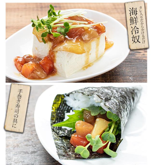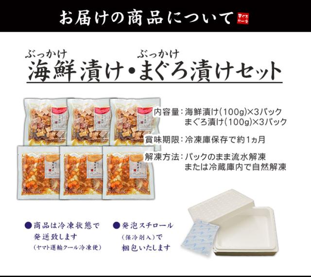 | 内容量 | 海鮮漬け:100g×3パック まぐろ漬け:100g×3パック |