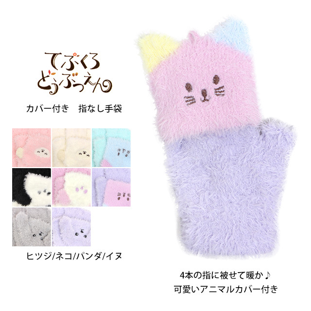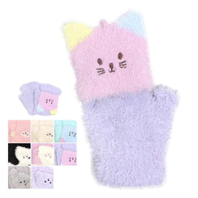 タイプ:子供用 防寒 手袋 アニマル 動物 ふわもこ 指無し 2way