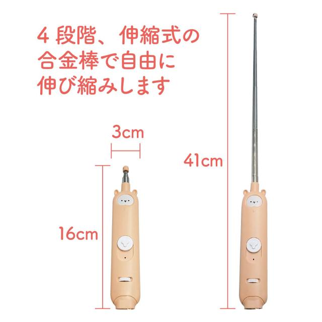 棒部分は、伸縮式の合金棒で4段階に伸び縮みできます。
