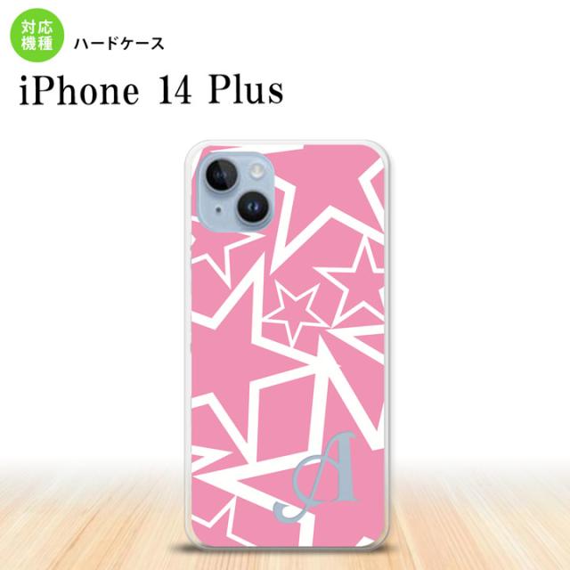 I14PL iPhone14 plus スマホケース 背面ケース ハードケース 星 ピンク 白 +アルファベット