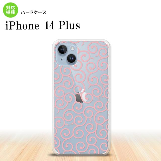 I14PL iPhone14 plus スマホケース 背面ケース ハードケース 唐草 クリア ピンク