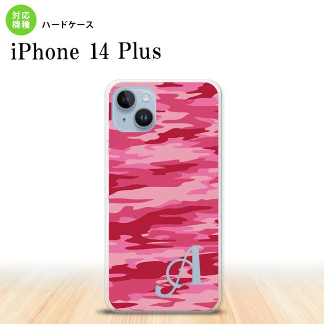 I14PL iPhone14 plus スマホケース 背面ケース ハードケース タイガー 迷彩 C ピンク +アルファベット