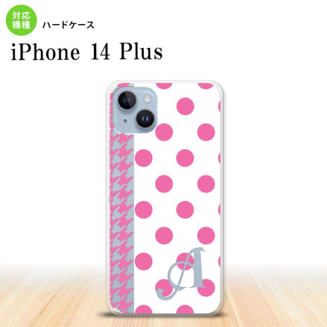 I14PL iPhone14 plus スマホケース 背面ケース ハードケース ドット 千鳥 ピンク +アルファベット