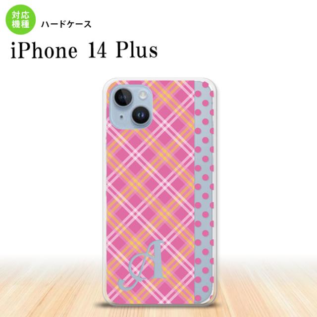 I14PL iPhone14 plus スマホケース 背面ケース ハードケース タータン ドット ピンク +アルファベット