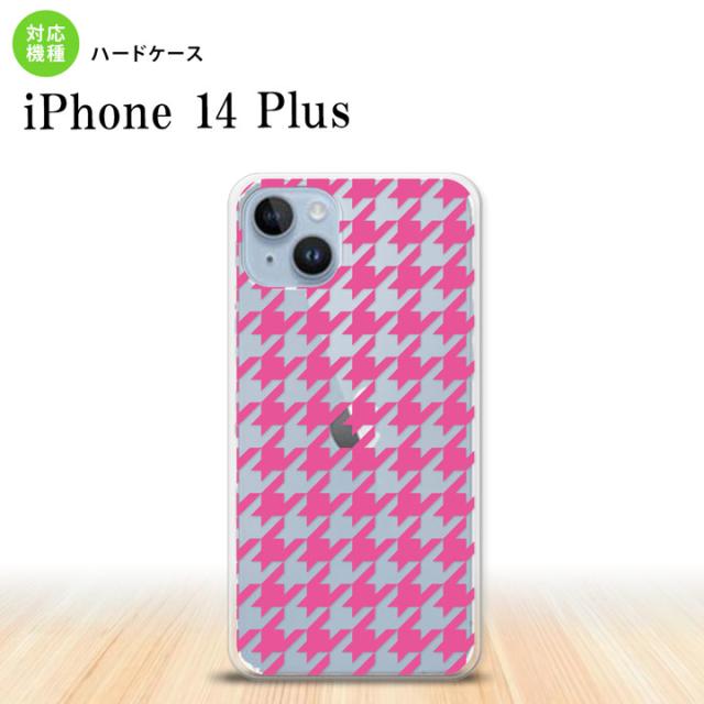 I14PL iPhone14 plus スマホケース 背面ケース ハードケース 千鳥 格子 大 ピンク クリア