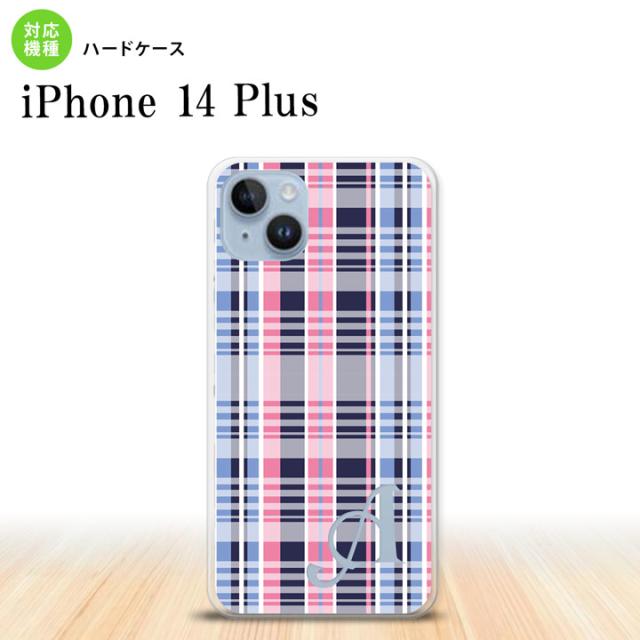 I14PL iPhone14 plus スマホケース 背面ケース ハードケース チェック B ピンク 青 +アルファベット