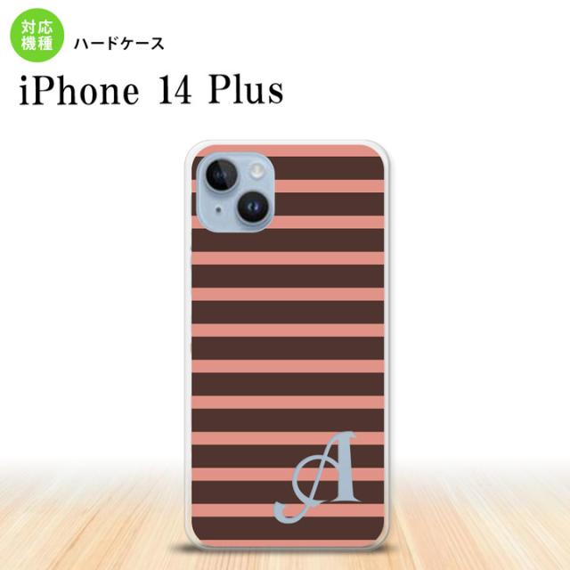 I14PL iPhone14 plus スマホケース 背面ケース ハードケース ボーダー 茶 ピンク +アルファベット