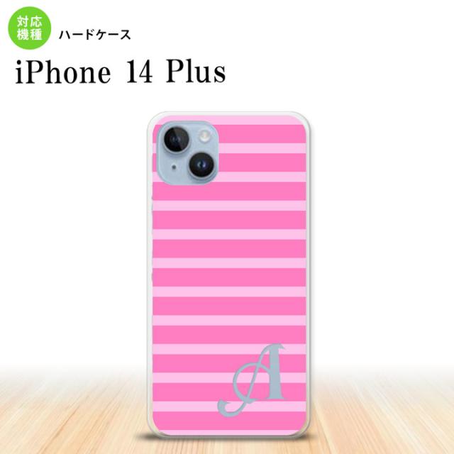 I14PL iPhone14 plus スマホケース 背面ケース ハードケース ボーダー ピンク +アルファベット