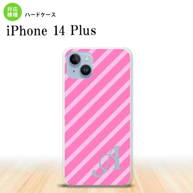I14PL iPhone14 plus スマホケース 背面ケース ハードケース ストライプ ピンク +アルファベット