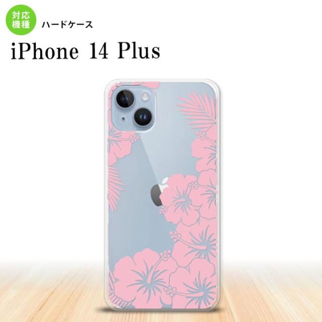 I14PL iPhone14 plus スマホケース 背面ケース ハードケース ハイビスカス F クリア ピンク