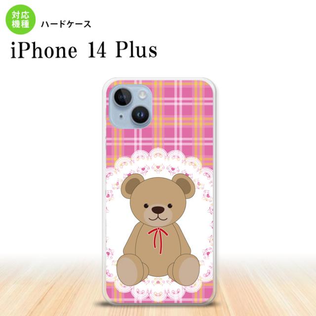 I14PL iPhone14 plus スマホケース 背面ケース ハードケース くま チェック レース ピンク メンズ レディース nk-i14pl-756