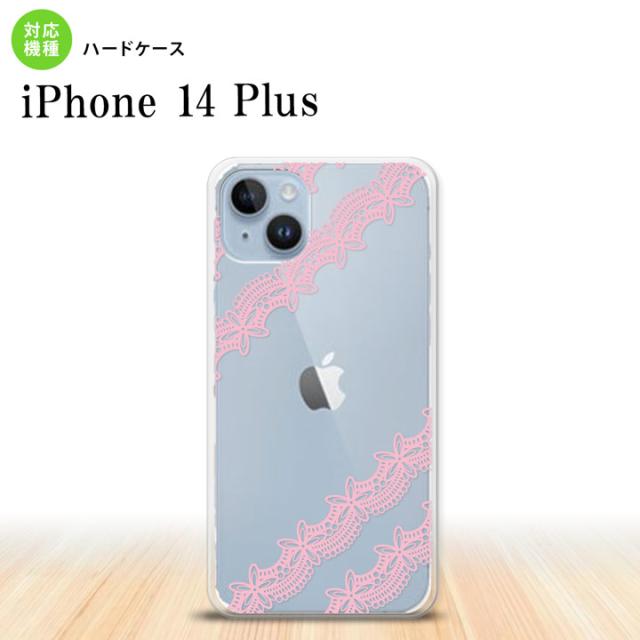 I14PL iPhone14 plus スマホケース 背面ケース ハードケース レース 帯 A ピンク
