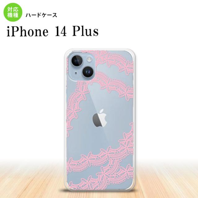 I14PL iPhone14 plus スマホケース 背面ケース ハードケース レース 帯 B ピンク