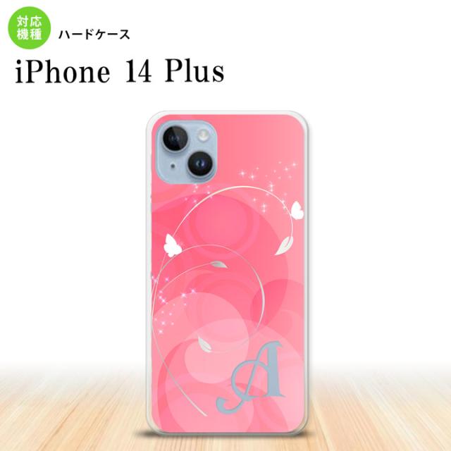 I14PL iPhone14 plus スマホケース 背面ケース ハードケース バタフライ 蝶 A ピンク +アルファベット