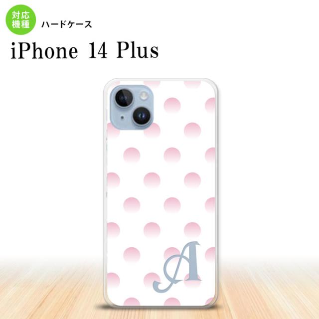 I14PL iPhone14 plus スマホケース 背面ケース ハードケース ドット 水玉 B 白 ピンク +アルファベット