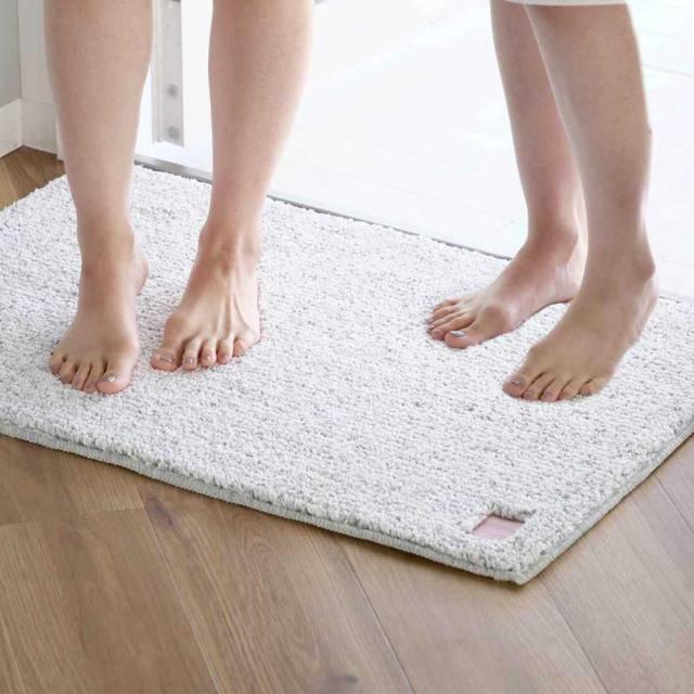 マットの裏面には滑り止め加工が施されているので、滑りやすい洗面所や脱衣所でも安心してお使いいただけます。洗濯ネットを使用すれば洗濯機での丸洗いも可能なので、お手入れ簡単です。