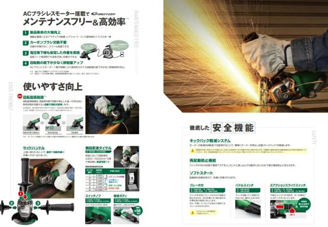 在 HiKOKI 100mm 電子ディスクグラインダ (ブレーキ付) G10BYEQ2 200V サイドハンドル付 パドルスイッチタイプ ※トイシ別売 日立 ハイコーキ