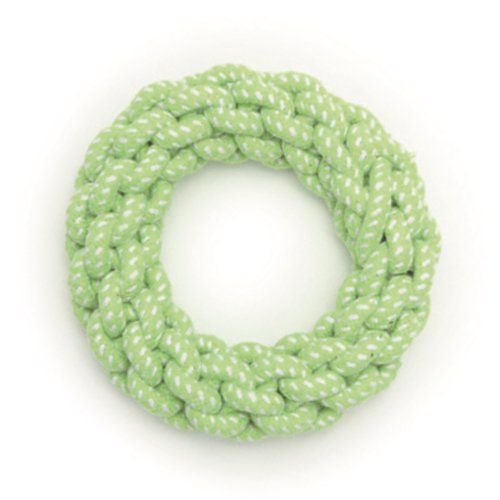 色鮮やかなビタミンカラーのロープが、遊ぶ前からワクワク感を盛り上げてくれます。 明るいグリーンのロープをドーナツ状に編んであります。 噛む・引っ張る・追いかける等、楽しく遊ぶことができ、しっかり噛めるので、ストレス解消やデンタルケアにもってこいです。 引っ張るとしなやかに伸びる程度の硬さに編んであるので、小型犬やシニア犬でもお使いいただけます。 注意事項 ●本製品は犬用おもちゃです。本来の用途以外には使用しないでください。 ●本製品は丈夫な素材を使用していますが、ワンちゃんの性格や遊び方等によってすぐに破損することがあります。 ●誤飲やいたずらを防ぐため飼い主様の目の届く場所で使用し、壊れかけた場合は直ちに使用を中止し新しいものに交換してください。 ●飲み込んでも害のない素材を使用していますが、万一誤飲した時は獣医師に相談してください。 ●おもちゃを投げて遊ぶときは、周囲の安全を十分に確認してください。 ●幼児やペットの手の届かない場所に保管してください。 ■サイズ:17cmx4cmx17cm ■素材:コットン、ポリエステル ■生産国:中国 ■輸入販売元:株式会社ルークラン |