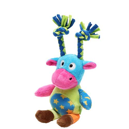 ビタミンカラーとスター模様で元気いっぱい! 「バブー ドリー」は、目に鮮やかなビタミンカラーのウシ型ぬいぐるみにスクウィーカーが入っています。 角はTシャツ生地を編んだロープになっています。 柔らかいおもちゃが好きなワンちゃんにおすすめです。 注意事項 ● 本製品は犬用おもちゃです。本来の用途以外には使用しないでください。 ● 本製品は丈夫な素材を使用していますが、ワンちゃんの性格や遊び方によってはすぐに破損することがあります。 ● 誤飲やいたずらを防ぐため飼い主様の目の届く場所で使用し、壊れかけた場合は直ちに使用を中止し新しいものに交換してください。 ● 飲み込んでも害のない素材を使用していますが、万一誤飲したときは獣医師に相談してください。 ● おもちゃを投げて遊ぶときは周囲の安全を十分に確認してください。 ● 幼児やペットの手の届かない場所に保管してください。 ■サイズ:12cmx22cmx5cm ■ 重量:34g ■素材:ポリエステル、コットン ■生産国:中国 ■輸入販売元:株式会社ルークラン |