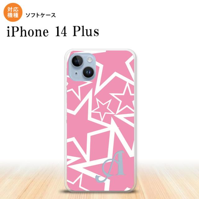 I14PL iPhone14 plus スマホケース 背面ケースソフトケース 星 ピンク 白 +アルファベット